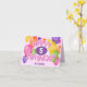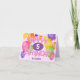 Esta divertida y colorida tarjeta de cumpleaños para los chicas incluye el mensaje "Feliz cumpleaños", escrito en galletas esmeriladas rosadas dispuestas de manera realista en la parte delantera de la tarjeta, rodeadas de globos multicolores y banderas de amarre - la edad y el nombre del niño pueden ser personalizados - dos galletas recortadas con forma de globo adornan el interior de la tarjeta - fondo es un patrón de pequeños puntos de polka blancos rosa pálido - de katz_d_zynes