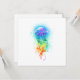 Grandes medusas de azulejo brillantes, de dibujos artísticos, con largos tentáculos en blanco, pintadas con fondo multicolor de acuarela. Mariscas arcoiris.