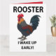 Gallo Ave Me Despierto Temprano Tarjeta de Gallo Divertido diseño original de Nisha Prabhu. ¿Eres un pájaro madrugador a quien le gusta levantarse y brillar con los gallos? Entonces esta divertida tarjeta de gallo es perfecta para ti. Con un gallo alegre y la frase "Me despierto temprano... como un gallo", esta tarjeta seguramente te hará sonreír todas las mañanas. ¡Consigue la tuya hoy y comienza tu día con una risa!