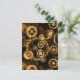 Sin soldadura, metalizado, latón, engranajes dorados sobre un fondo oscuro y oxidado. Estilo Steampunk.