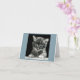 Un adorable gatito difuso de un dibujo de un tablero de arañazos. Gracias a Angels Rescatando a Kritters por salvar a este pequeño y a sus compañeros y por proveer un futuro brillante encontrando un hogar para siempre. Esta tarjeta tiene un fondo azul que coincide con los ojos del gatito.