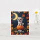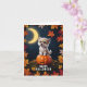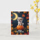 Tarjeta Gatito Adorable en una Calabaza con Hojas de Otoño