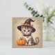 Tarjeta Gatito de cosecha en traje de bruja de Halloween