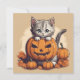 Tarjeta Gatito de Halloween y Jack-O'-Lantern