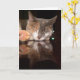Un gato de calicó el dormir refleja en un escritorio en esta toda la tarjeta en blanco de la ocasión.