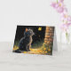 Tarjeta Gatito viendo una caída de la hoja de otoño