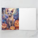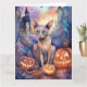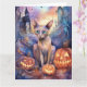 Tarjeta Gato Abisinio de Halloween con Calabaza Espeluznan