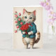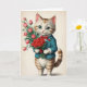 Un adorable gato de San Valentín sostiene un ramo de rosas