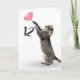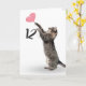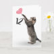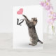 Gato atigrado gris con globo aerostático en forma de corazón rosa para el duodécimo cumpleaños sobre fondo blanco. El color del fondo se puede cambiar