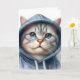 Tarjeta Gato atigrado gris y blanco lindo ojos azules suda
