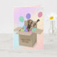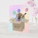 Gato bengalí en caja de cartón genérica con globos y confeti por 104 años