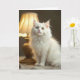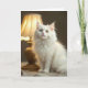 Tarjeta Gato Blanco De Cumpleaños Sentado En Lámpara Cálid
