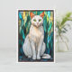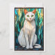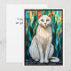 Tarjeta Gato blanco de ojos verdes al estilo de vitral