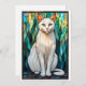 Tarjeta Gato blanco de ojos verdes estilo vidrio emplomado