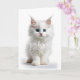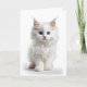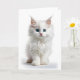 Gatito blanco de pelo largo y hermosos ojos azules en esta tarjeta de felicitación en blanco.