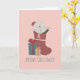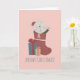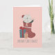 Tarjeta Gato blanco lindo en calcetines de Navidad