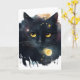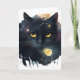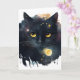 Tarjeta Gato Cósmico Acuarela Negra con Ojos Amarillos