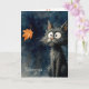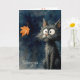 Tarjeta Gato De Cumpleaños De Octubre Con Hoja De Otoño
