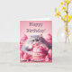 Tarjeta Gato de cumpleaños feliz con pastel rosa