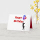Feliz cumpleaños rojo con gato negro y un globo de polika dot con fondo blanco