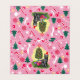 Este es un hermoso, divertido y alegre diseño de Navidad rosa. Cuenta con una ilustración de un gato negro con un árbol de Navidad y un patrón de caramelos, pequeños árboles verdes, copos de nieve y estrellas fugaces flotando alrededor.