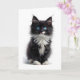 Tarjeta Gato de pelo largo blanco y negro ojos azules en b
