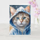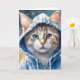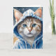 Tarjeta Gato de Tabby con Capucha Azul Arte en Acuarela Sa