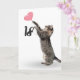 Gato grisáceo con globo de corazón rosado por 18 años sobre fondo blanco. El color de fondo se puede cambiar