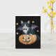 Tarjeta Gato de Tuxedo lindo Gato de calabaza de Halloween