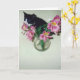 Tarjeta Gato del feliz cumpleaños con las flores en
