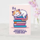 Tarjeta Gato en una Pila de Libros Lindo Personalizado Lit