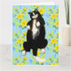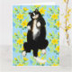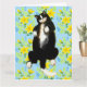 Tarjeta Gato esmoquin durmiendo en cama floral