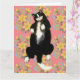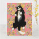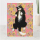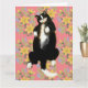 Tarjeta Gato esmoquin durmiendo en cama floral