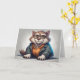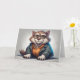 Adorable gatito con gafas que lleva una camisa y chaqueta en esta tarjeta de felicitación en blanco.