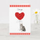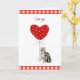 Esta tarjeta del día de San Valentín tiene un gato gris a rayas sosteniendo un globo en forma de corazón blanco con lunares rojos sobre un fondo blanco con un marco de gingham rojo y blanco a cuadros en la parte superior e inferior. La parte delantera y la interior se pueden personalizar con el nombre de tu propia mascota con las plantillas que he proporcionado. Si te gusta lo que ves, pero no ves lo que quieres, puedo editar mis diseños para imprimirlos en los artículos que necesitas. Todos los artículos son enviados por Zazzle y tienen una garantía de satisfacción del 100%. Para problemas con tu pedido y envío, por favor contacta con el Soporte al Cliente de Zazzle a través de https://goo.gl/nCgptf