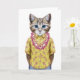 Características del este diseño un retrato del gato en una camisa del verano y leus hawaianos.