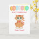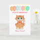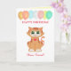 El cumpleaños de Ginger Kitty Cat desea una tarjeta de amistad. Un gato lindo con globos de cumpleaños en la tarjeta de fondo blanca. Todos los textos se pueden personalizar.