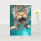 Tarjeta de Felicitaciones en Blanco de Gato Nadando Bajo el Agua - Esta divertida tarjeta de felicitaciones en blanco presenta a un gato nadando alegremente bajo el agua, capturado en medio de una salpicadura con ojos muy abiertos de emoción. Perfecta para cumpleaños, felicitaciones o simplemente para hacer sonreír a alguien. Versátil y divertida, es ideal para amantes de los gatos y cualquiera que disfrute del humor y la creatividad en su papelería.
