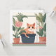 Tarjeta Gato naranja en una maceta de flores