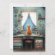 Tarjeta Gato Naranja raro en una ventana de saludo plano