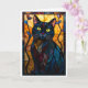 Tarjeta Gato negro con hojas al estilo de vidrio emplomado