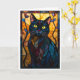 Tarjeta Gato negro con hojas al estilo de vitral
