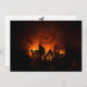 Tarjeta Gato negro de Halloween con luminarios y murciélag