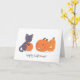 Tarjeta Gato negro de Halloween y calabazas