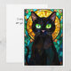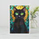 Tarjeta Gato negro encantador de estilo vitral con ojos ve