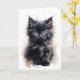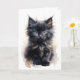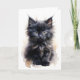 Tarjeta Gato negro esponjoso de pelo largo Acuarela Blank