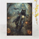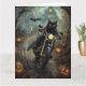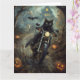 Tarjeta Gato Negro Montando Motocicleta Halloween Terroríf