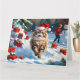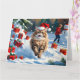 Tarjeta Gato persa sentado en nieve con Gorra Navidad