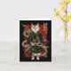 Tarjeta Gato samurai con kanji japonés dragón