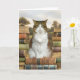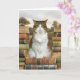Un delicioso gato atigrado se sienta felizmente sobre pilas de libros antiguos. Los gatos y los libros simplemente parecen ir juntos. Cuando estás leyendo, vienen y se sientan en tu libro, o piensas en gatos de biblioteca y librería. Una tarjeta perfecta para el amante de los libros antiguos y la mamá gata.